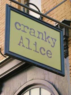 It only takes us about 25 minutes to get to her house from the “burbs” but we rarely spend any time there. After we dropped the boys off we decided to venture into “town” to check out a couple little stores that we’ve heard a lot about. Why not, we were kid free! I’ll be honest when I tell you that my husband and I were not anticipating much more than a couple gift shops that were “a little bit country” selling nothing more than overpriced, lacey pillows. WE WERE SO WRONG… These two stores were two of the cutest, most economical shops I have been to in a long time. Mosaic Alley and Cranky Alice sit nestled among bars, pizza parlors, hair salons, yoga studios, and flower shops. They have adorable store fronts with creaky old doors that jingle when you open them and invite you right in.