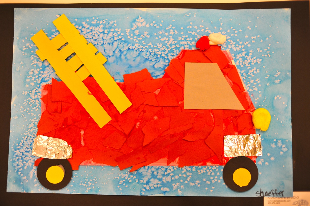 We had the party at Kid Create Studio in Eden Prairie and they helped us make a very cool birthday card and firetruck project…  It was a great place to have a birthday party.  The kids were totally engaged, quiet and so creative….