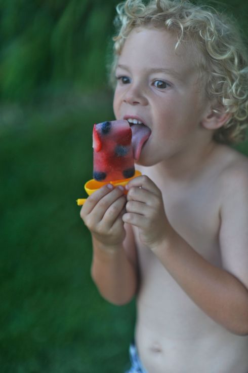 I’m not sure about you, but we are being blanketed by some extreme heat this week. Yesterday the heat index was well over 100′ and I actually heard the weatherman say that our humidity resembles that of the Amazon… WOW… Needless to say we are going through popsicles like they are water! I actually think if I made ice with a stick and called them “watersicles” my boys would eat them right up! We made super easy popsicles today. I simply sliced up some of our favorite fruit and put it in our molds along with some pink lemonade… I figured we could make these somewhat healthy! If you don’t have popsicle molds paper cups work just fine, they are also super easy to tear off the cold treat when you are ready to eat it! I’ve also seen people use cute little shaped cups or molds to make their popsicles in. Do any of you have one of those new fancy Zoku popsicle makers? We don’t have one yet, but a friend does and really says it’s great, what are your thoughts? Here are a couple other recipes I have gathered over the years…. Stay cool!