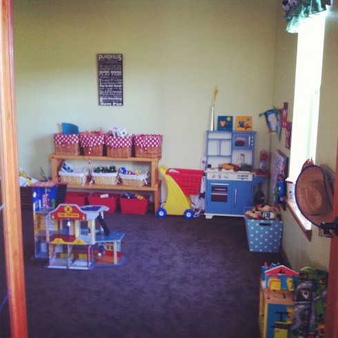 Shaeffer attended an amazing preschool this past year, Mountain Montessori. I love that what he has learned comes home on a daily basis. WAY WAY back in May we had a little party with some neighbors. Our playroom was completely turned upside down after having so many kids in it. We were thankful that they had fun, but it was a bummer to clean up. We literally took two days (about a month later) to reorganize and clean up all of our toys. I asked the boys if they had any ideas on how to keep the playroom clean and Shaeffer suggested we use “rugs” like in Montessori. So he’s been doing “demonstrations” for any of our friends who come over to play on how to play with the toys. We have some rugs that they get out and play with one item at a time (or one theme of items (farm stuff etc..)) at a time. It’s been working so far and it helps with the clean up and organization of the playroom. Thanks to Montessori we’ve had a bit more of a peaceful playroom the past few weeks!