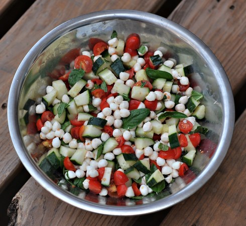 We were heading out on little picnic with some good friends of ours right before we left on vacation.  I wanted to make sure I used up our veggies so they wouldn’t go to waste while we were away.  Basically I just made a Caprese Salad and added cucumbers.  Nothing fancy, but it was really yummy!