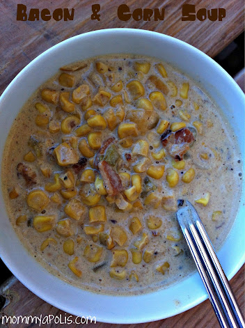 I’ve been trying to have the boys help me make dinners. It seems like if they “help” then they are more apt to try what we are making. This week we made Sloppy Joe’s, which they loved and then yesterday we made bacon and corn soup. I was sure they’d love it because it has all the things they LOVE in it. I was wrong. Ben and I thought it was awesome, as did little Sanders, but for some reason I can’t get my bigger boys to eat soup. They just don’t think they like it- no matter what is in it! I’ve tried noodle soups, vegetable soups, wild rice soups, etc.. no luck. Today was no different, but I’m not giving up. Like I said three of the five of us LOVED this soup- Sanders even had seconds! I adapted this recipe from The Pioneer Woman… The first difference is that I didn’t use fresh corn, I used frozen! I also didn’t add adobe peppers like she does, used milk instead of cream, added more bacon, and used less peppers… I also noticed she has a version with cheese, I didn’t use cheese either! Here is my version, it really was delicious, I’ll totally make it again…