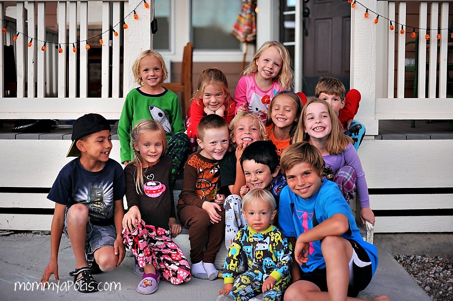 5:30: Our 12 Guests arrived all cozy in their PJ’s. We played with some MONSTER beach balls (they just had monster faces on them) in the front yard while we waited for everyone to arrive.
