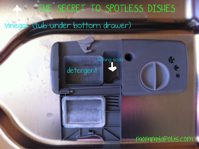 3. In the base of your dishwasher, yes the tub part, under the bottom rack poor some vinegar. I probably use about a cup a cycle, maybe a little less.