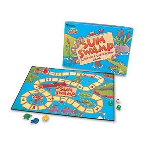 We have lots of fun toys at our house and in my opinion playing is learning so I believe ALL of them are educational. A few of them fit into modern day “school” curriculum, however, and tonight I was reminded just how much fun learning can be! We have this game, “Sum Swamp” that we’ve had for a while, but really never played it. Well this week we’ve been playing it like it’s going out of style and I can honestly say I LOVE IT. I love watching my boys brains work… You can just see their little wheels a turning while we play this game. Our two year old even plays with us in his own little way- super cute! Here are the details on this game and some of our other favorite “educational” toys…