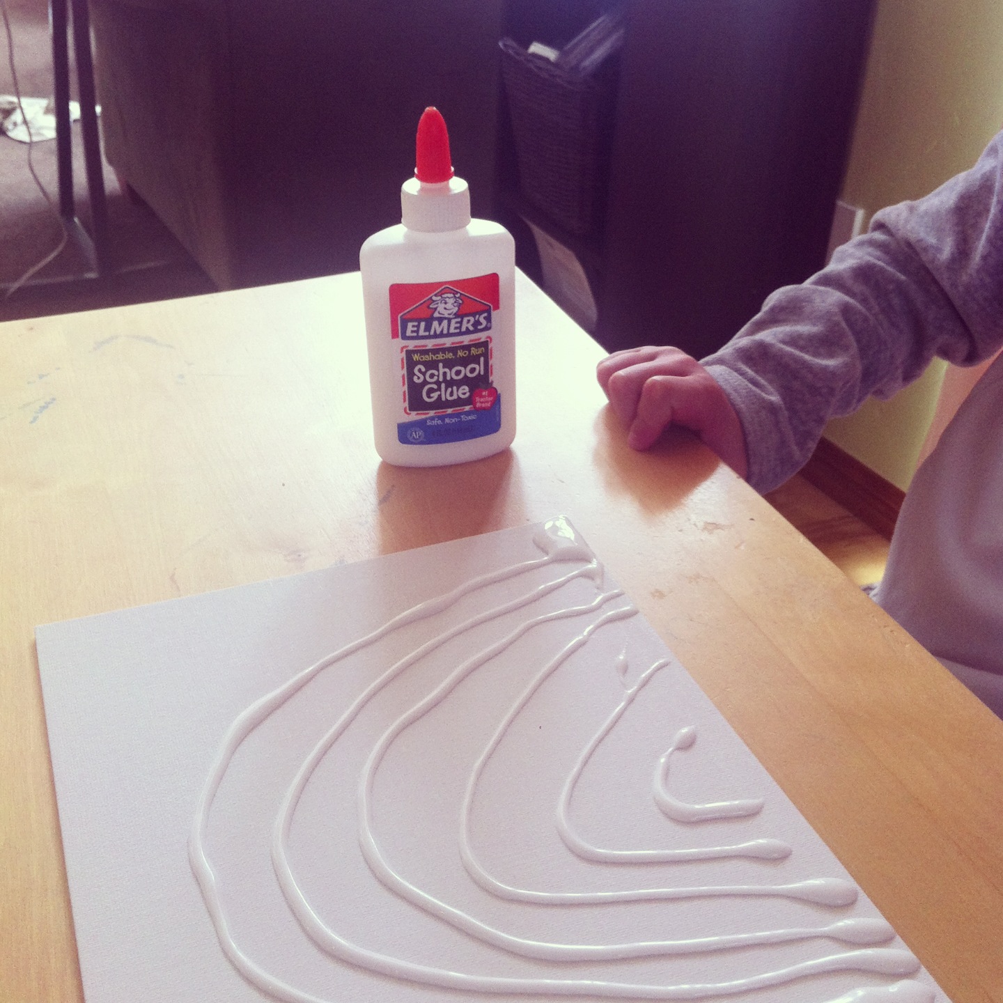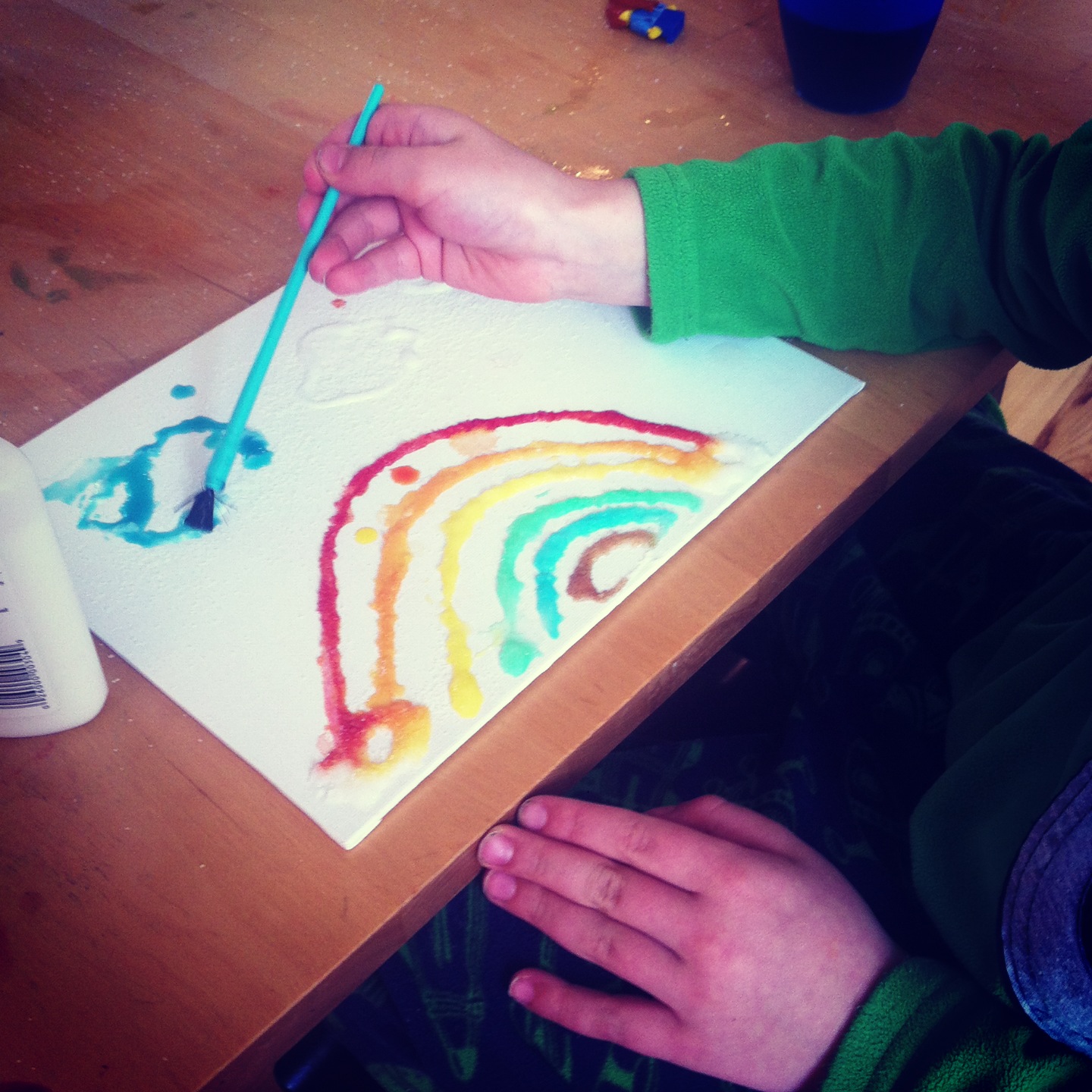 2. Sprinkle the glue rainbow with a pretty good amount of salt… be ready for a bit of a mess 🙂