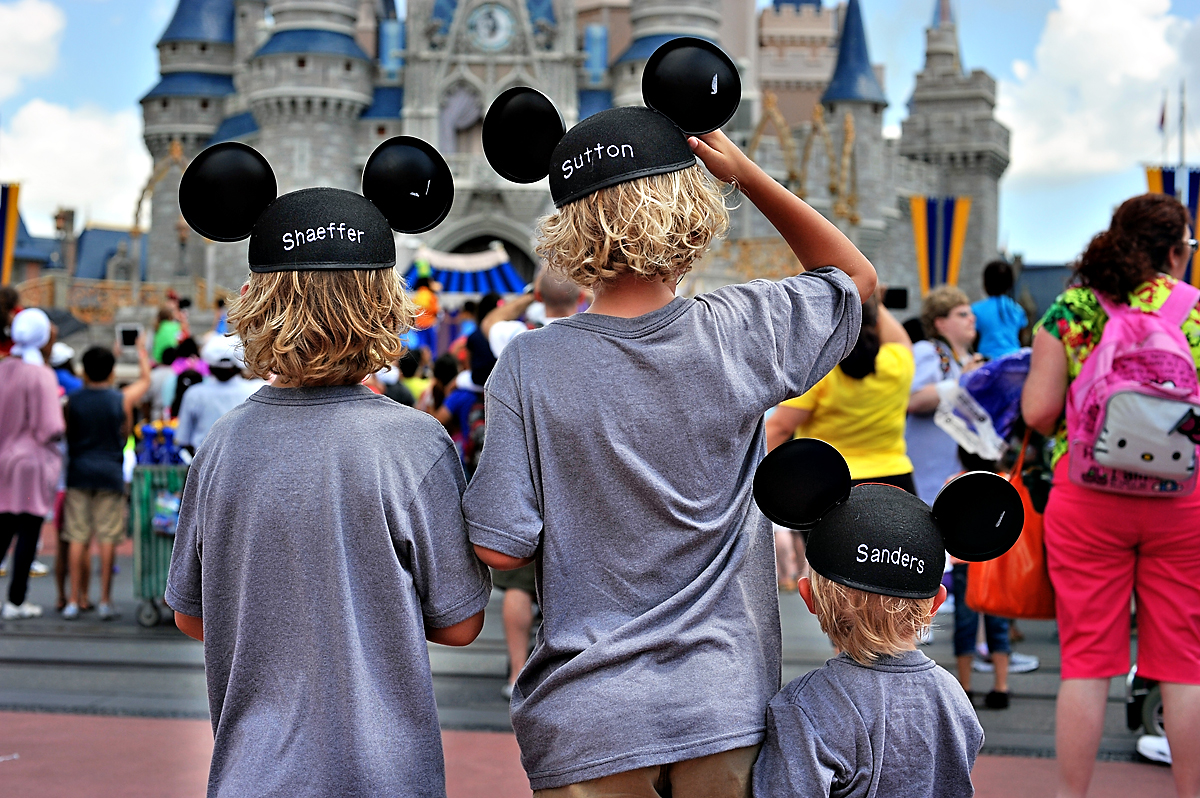 1. I preordered their Mickey Ears, T-Shirts and Trading Pins from The Disney Store to save a little time and money at the park! The Trading Pins were a lot of fun… Basically the kids can trade the pins they have with Disney employees all over the park. It was fun for the boys to try to find their favorite characters and it also involved them with the “cast members” a little bit. We gave them all their “SWAG” when we surprised them with the trip!