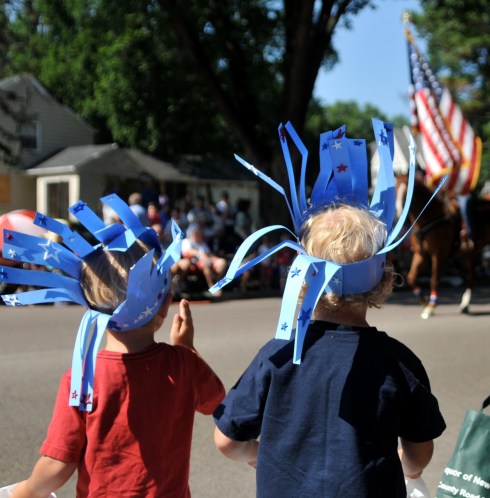This morning we continued the tradition of attending the Edina 4th of July Parade… I thought it would be cute if the boys made hats to wear this weekend to all of the many “patriotic” events we are attending… We also made them for our little friends and believe me the four of them got almost more attention than the parade. I don’t think it was because of the hats, but rather their cute little selves…