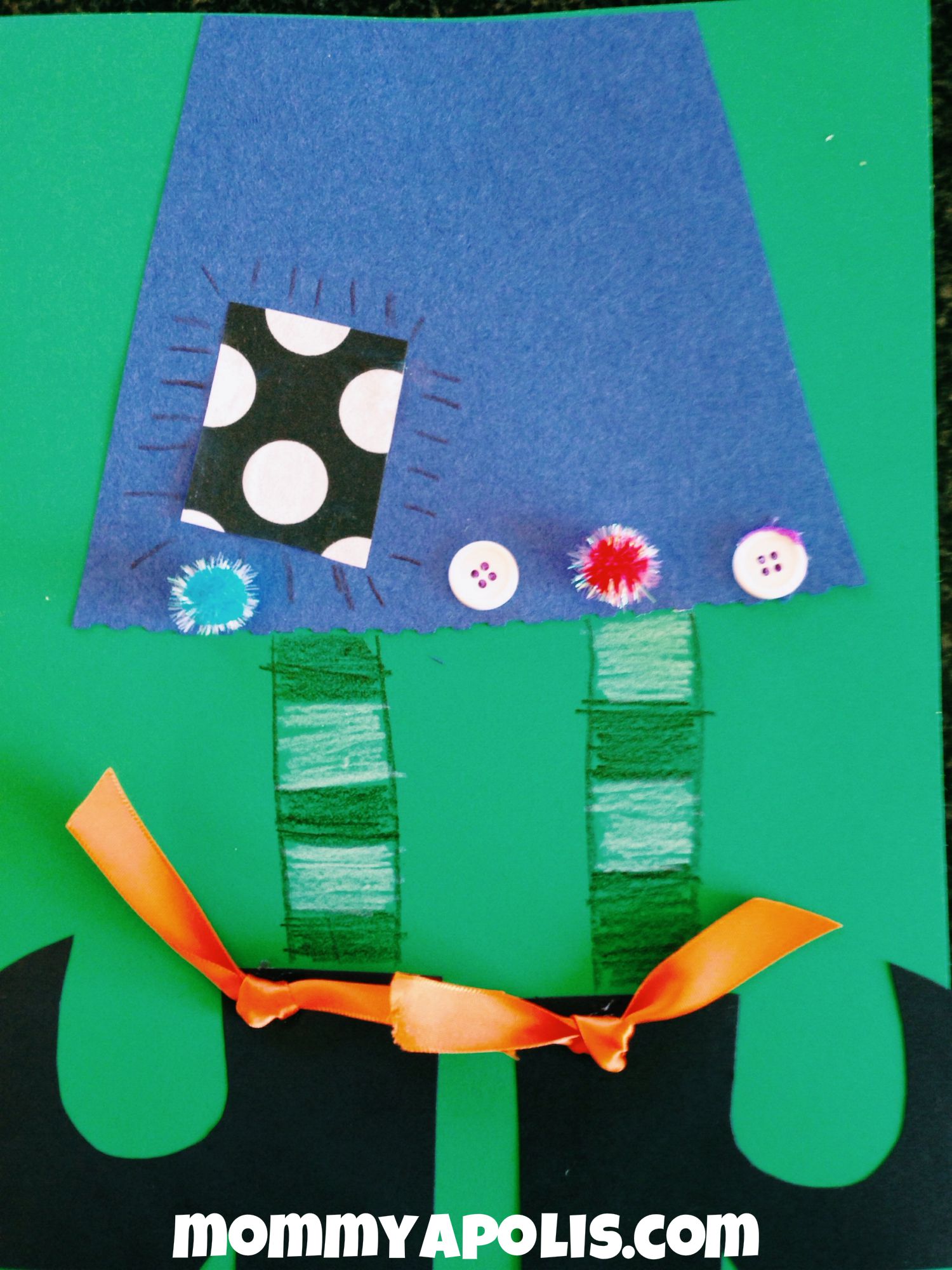 Depending on the age of your children you’ll need to cut out the dress, fabric patch and shoes. My older boys were able to do this themselves. Glue these things on so the dress is at the top of the page. Let your younger children do the gluing if they are able. The rest is pretty simple, glue on the bows, buttons, patch etc.. Draw the legs of your witch and TADA… You have yourself the KIND or Wicked witch of the East… or what ever you want to name her… 🙂 What joy this time of the year brings to our little ones!