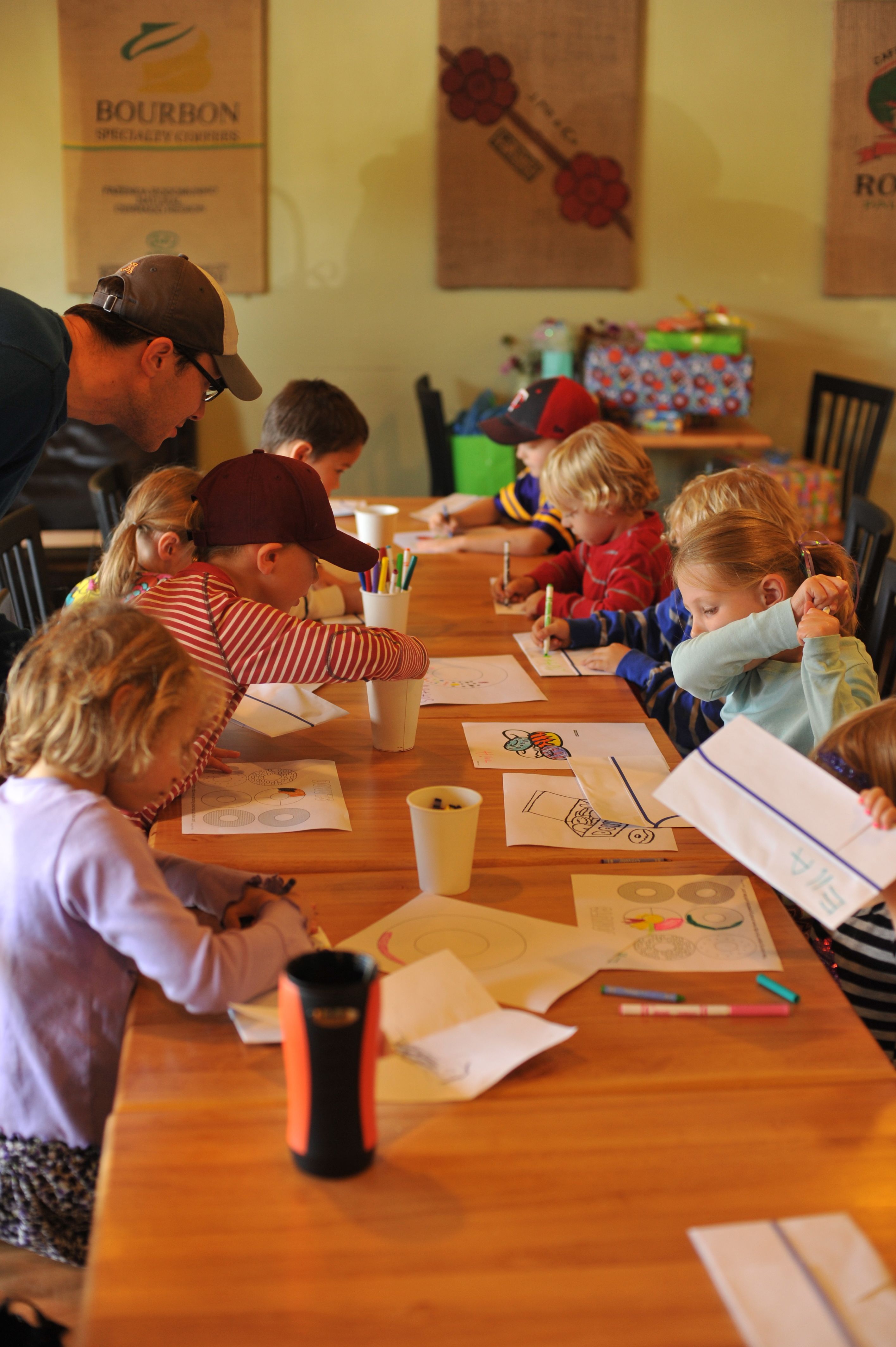It was almost time for our party to commence… I read the children the Curious George book and Sutton passed out his favors! Since most of the parents stayed for the party, the children gathered their things, gave big hugs and were on their way! It was a special party for our very special 6 year old! No matter where you live, I suggest calling a local bakery and seeing if they do birthday parties! If you live in the Minneapolis area call YO-YO! We had a lot of fun and learned a lot too! Thank you Mr. Chris and Yo-Yo donuts!