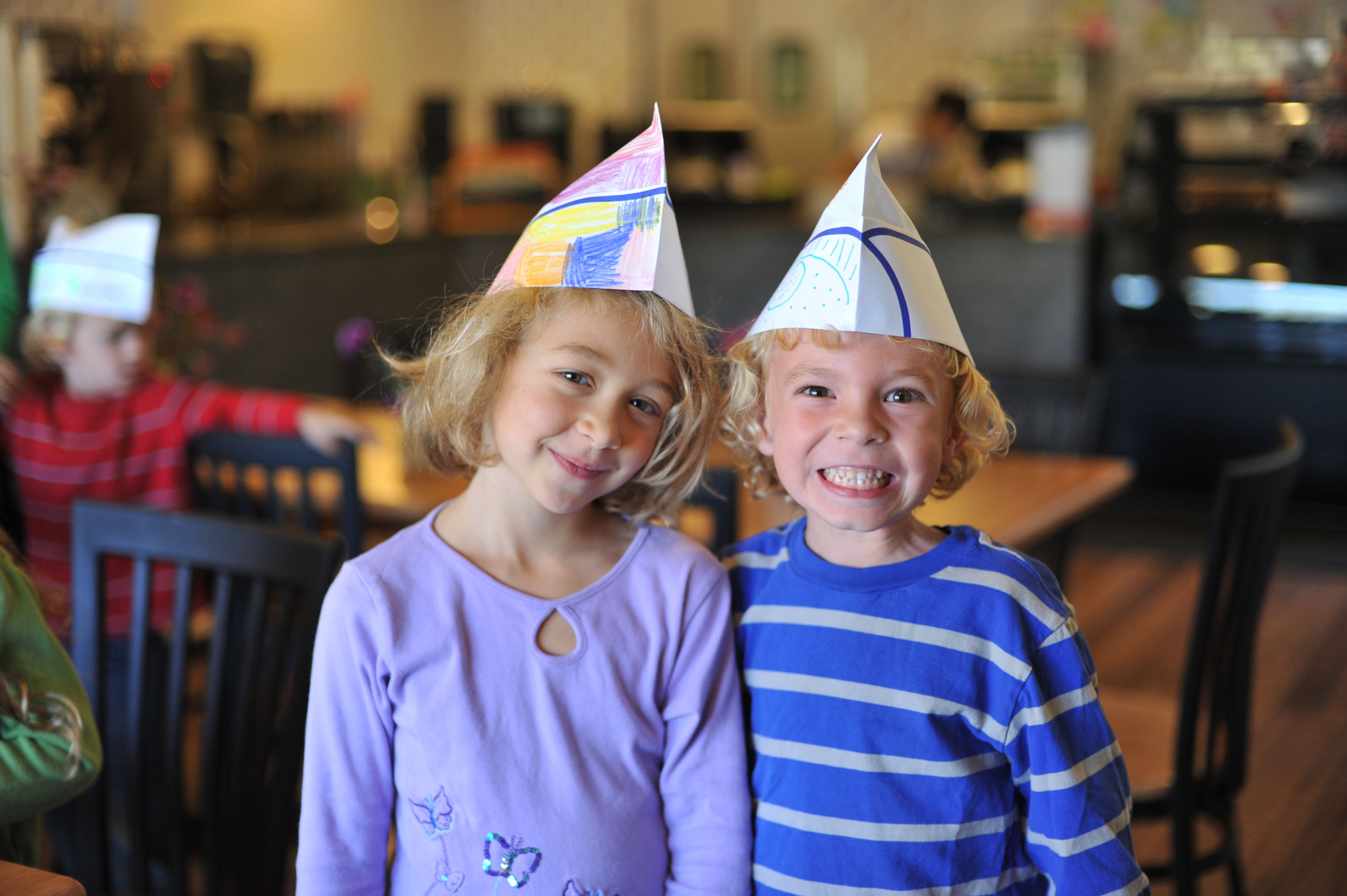 OK, Party time… The children arrived and they colored some different donut coloring sheets for about 5 minutes until everyone was there… The owner of the bakery (Mr. Chris) was the guy who “ran” the party and the children thought he was great! He explained to them a little bit about being bakers and then they all made bakers hats to keep their hair from falling in the donuts (HA HA)!