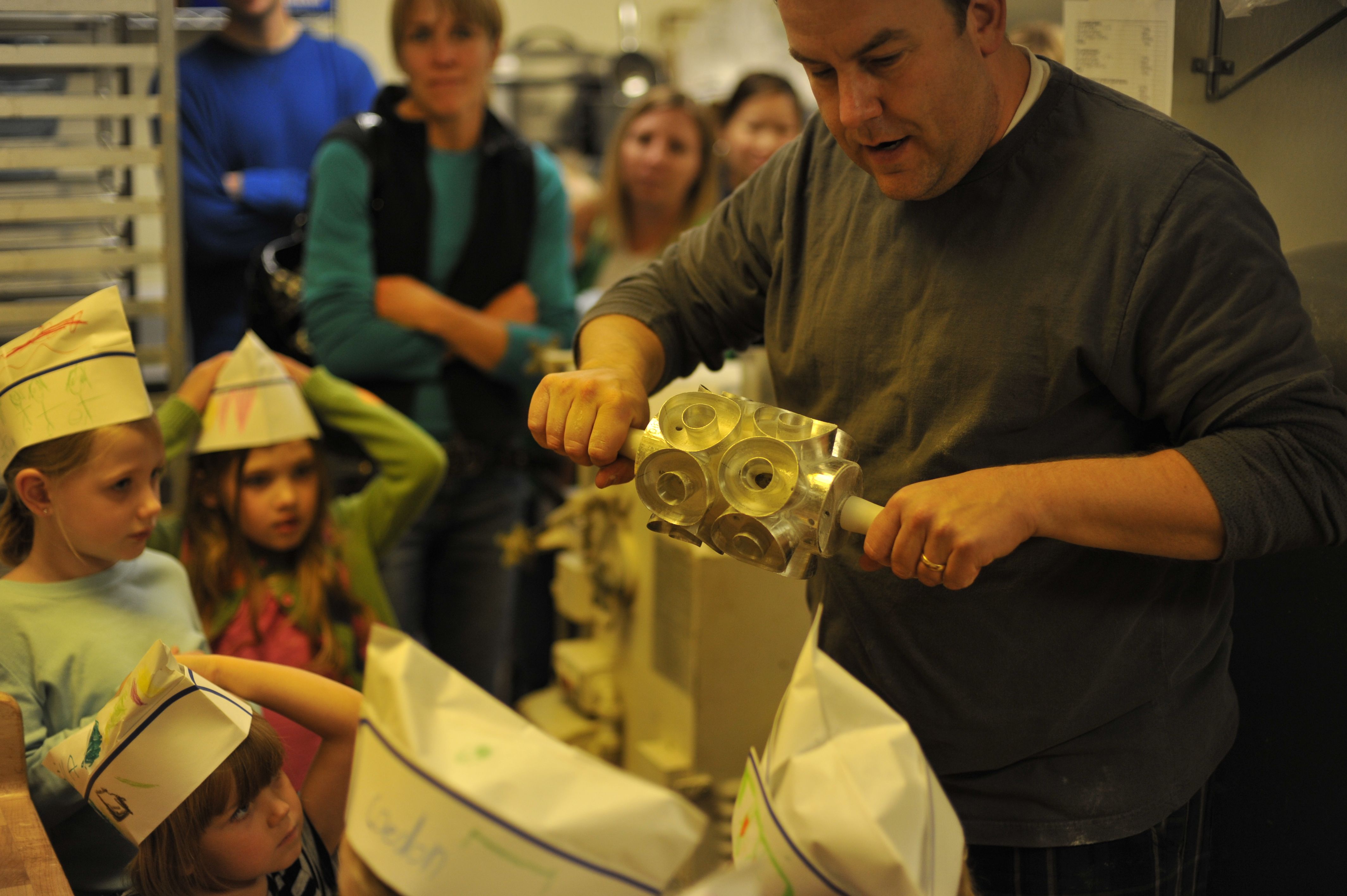 This was awesome! I think the parents loved this as much as the kids did! We learned about how they mix the dough, get the air out of the dough, roll out the dough, cut the dough, and the differences between the two donut doughs they use! We even got to see his big fridge and freezer!