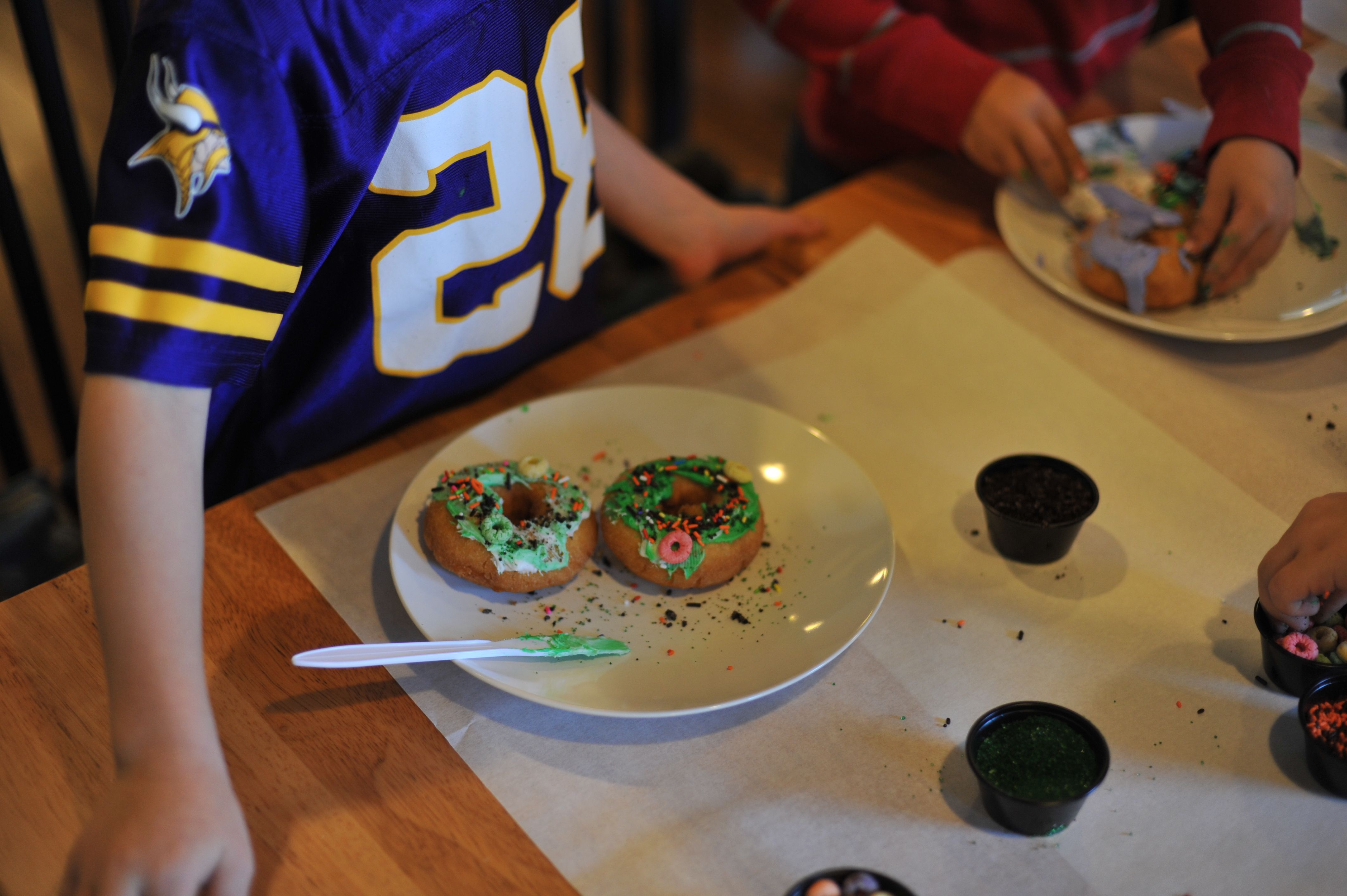 Then it was time… DONUT DECORATING… Mr. Chris gave them all sorts of fun things to decorate with… We had gummy worms, Oreos, fruit loops, sprinkles, and frosting in all sorts of colors.