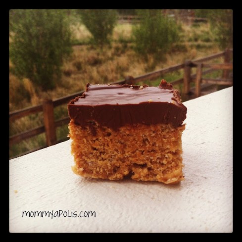 These are the perfect picnic, bake sale, bring to a friend kind of dessert.  They are similar to Special K bars except they are made with all natural peanut butter and Rice Krispies instead of Special K…..  I do not in any way suggest these are healthy, they are full of calories, but they are certainly YUMMY…  Here’s the scoop: