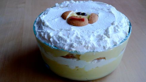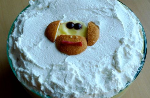 Many of you probably make this dessert or someone has made it for you in the past… It is a layer of Nilla Waffers, a layer of Vanilla pudding, a layer of bananas and a layer of whip cream… You then repeat the process… My great friend Jen had a monkey birthday party for her three year old and made THE CUTEST cupcakes ever. I “borrowed” her idea and altered it to fit my dessert and the supplies I had at home and made a little monkey for the top. Jen’s cupcakes were made with chocolate frosting so the monkey had a brown face. She used black gel frosting for the eyes and nose and red gel frosting for the mouth. My monkey obviously has a yellow pudding face, mini M&M eyes, pudding nose and a licorice mouth… Super easy and the boys just loved it!