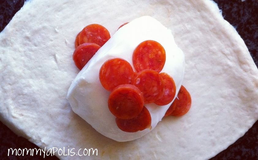. Any ways, they had a pot luck dinner prior to the ceremony and it was organized so well. The sign up for pot luck included all the basics, appetizer, salad, fruit, entree, paper products, drinks and kid food… KID FOOD=GENIUS, I mean why didn’t I think of that… They had an entire table of kid food, which I find perfect because my kids are not huge fans of random salads and casseroles (yes I wanted to say hot dish). One family brought little PB& J sammy’s with the crusts cut off… There were mini hot dogs, nuggets, cheese and crackers, etc.. It was adorable. We brought PIZZA BITES for this table… Pretty easy and very yummy! I think these would be a great appetizer for a party or even a fun dinner at home. You can fill your bites with what ever you want. I did pepperoni for ease, but anything would be yummy! Here’s The Scoop: